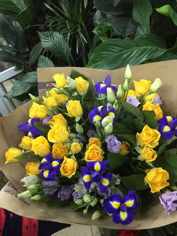 Сборный букет # 2 051 8190 руб. можно купить в кредит В корзину Состав Розы кустовые (желтые): 7 Ирисы: 9 Эустома: 5 Мимоза: 1 Салал Берграсс Оформление Крафт-бумага Лента Состав Розы кустовые (желтые): 7 Ирисы: 9 Эустома: 5 Мимоза: 1 Салал Берграсс Оформление Крафт-бумага Лента