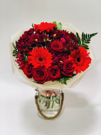 Сборный букет # 2 056 6890 руб. можно купить в кредит В корзину Состав Розы "Red Naomi": 5 Хризантемы "Red Charm": 3 Герберы: 3 Папоротник "Costa Rica": 3 Оформление Органза Лента Состав Розы "Red Naomi": 5 Хризантемы "Red Charm": 3 Герберы: 3 Папоротник "Costa Rica": 3 Оформление Органза Лента