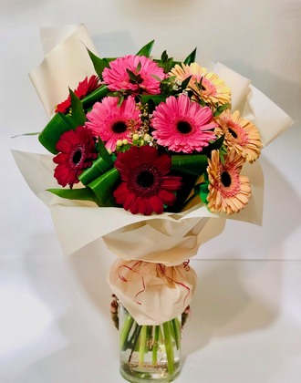 Букет из гербер # 14 002 5190 руб. можно купить в кредит В корзину Состав Герберы: 9 Листья Аспидистры: 7 Гиперикум (белый): 3 Оформление Пленка Рафия Состав Герберы: 9 Листья Аспидистры: 7 Гиперикум (белый): 3 Оформление Пленка Рафия