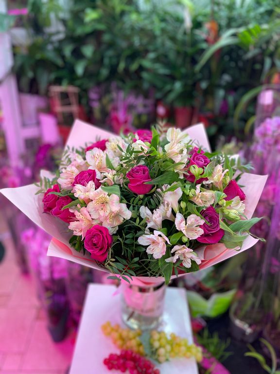 Сборный букет # 2 062 6590 руб. можно купить в кредит В корзину Состав Альстромерии: 7 Розы: 12 Фисташка: 4 Оформление Корейская плёнка Лента Состав Альстромерии: 7 Розы: 12 Фисташка: 4 Оформление Корейская плёнка Лента