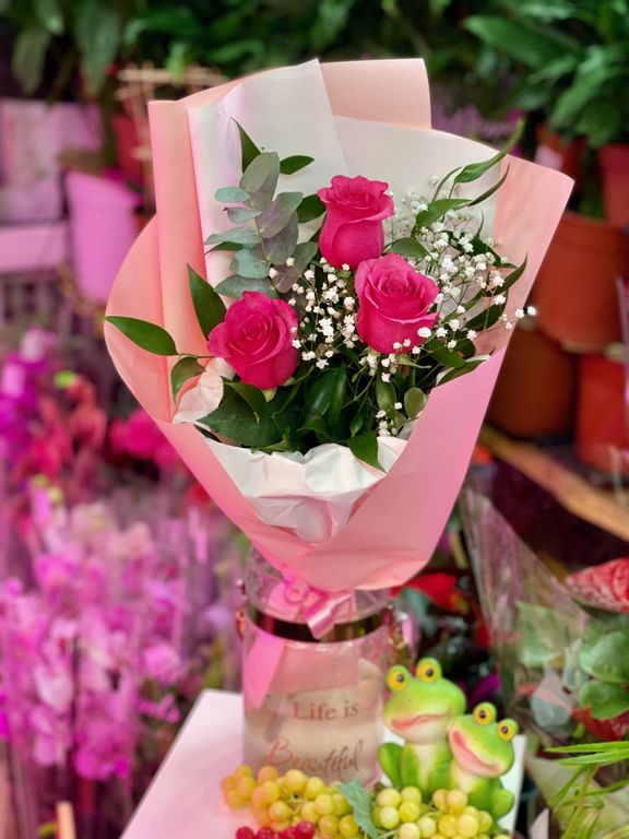 Букет из роз # 1 052 2290 руб. В корзину Состав Розы: 3 Эвкалипт: 1 Гипсофила: 1 Рускус: 3 Состав Розы: 3 Эвкалипт: 1 Гипсофила: 1 Рускус: 3