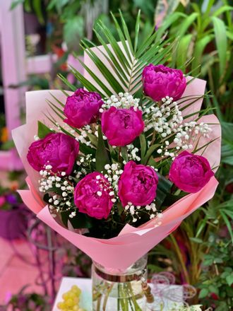 Букет из пионов # 15 007 9990 руб. можно купить в кредит В корзину Состав Пионы "Glory": 7 Гипсофила: 1 Лист Робелины: 1 Лист Аспидистры: 3 Рускус: 4 Оформление Корейская пленка Лента Состав Пионы "Glory": 7 Гипсофила: 1 Лист Робелины: 1 Лист Аспидистры: 3 Рускус: 4 Оформление Корейская пленка Лента