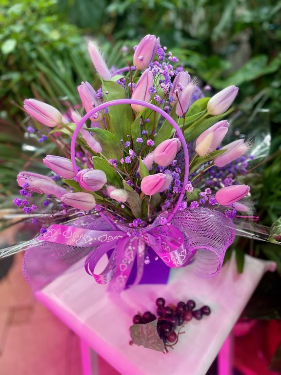 Цветы в сумке #18 002 4990 руб. можно купить в кредит В корзину Состав Тюльпаны: 15 Гипсофила (цветная): 2 Оформление Веточки березы Сумочка Ооазис Бант Состав Тюльпаны: 15 Гипсофила (цветная): 2 Оформление Веточки березы Сумочка Ооазис Бант