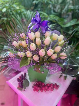 Цветы в сумке #18 003 4490 руб. можно купить в кредит В корзину Состав Тюльпаны: 21 Гипсофила (цветная): 2 Оформление Веточки березы Сумочка Оазис Бант Состав Тюльпаны: 21 Гипсофила (цветная): 2 Оформление Веточки березы Сумочка Оазис Бант